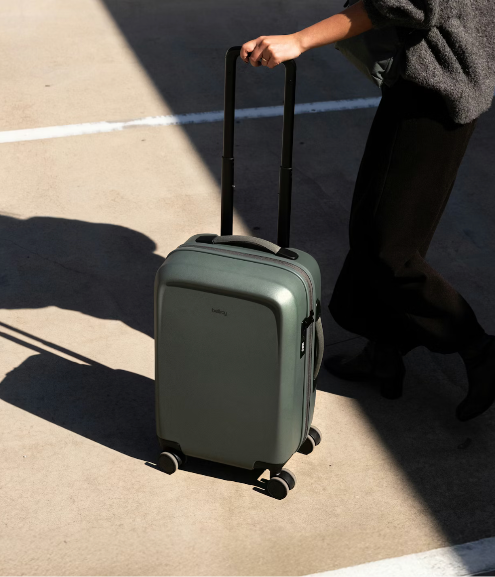 Set adrift on streets and skies, suitcases tracing paths with the quiet promise of journeys yet to unfold.