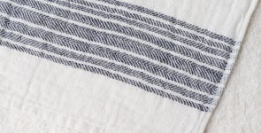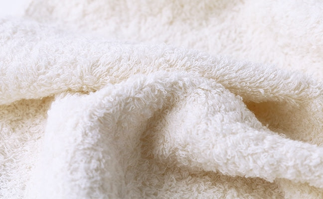 Crafted with care from soft and luxurious organic cotton, it ensures a soothing touch on the skin. The classic herringbone pattern on a serene ivory chevron background makes it a true work of art. Its long pile on one side and smooth gauze on the other make it lightweight, absorbent, and quick-drying, ideal for daily use at home or on-the-go.