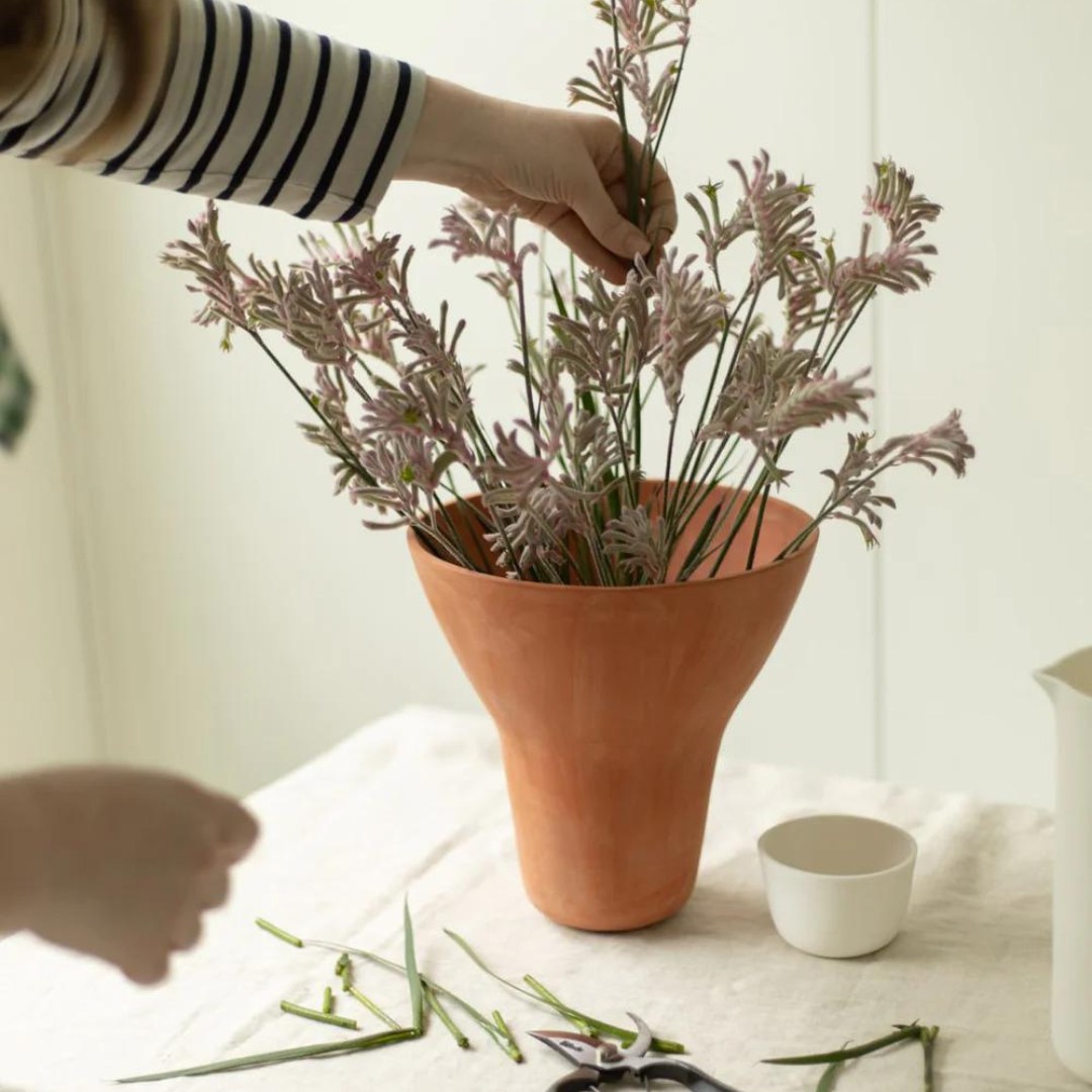 The 013 Vase is created with a two-part combination of recycled porcelain (a by-product of the casting process) and terracotta. The addition of recycled porcelain allows our studio to create zero clay waste by utilising any B-grade porcelain scraps from the production process. Porcelain also provides a lighter hue, smoother texture, and greater strength to the piece.