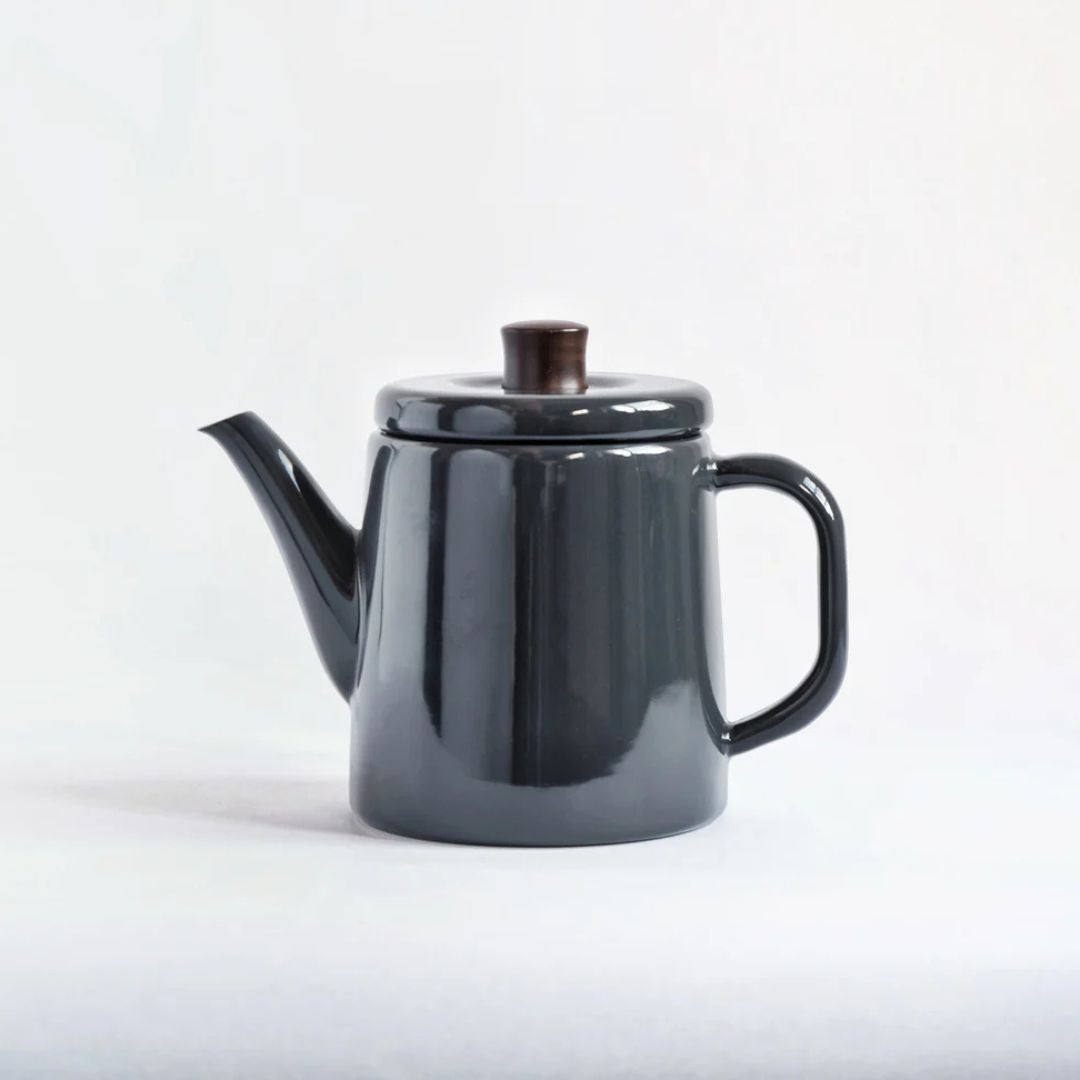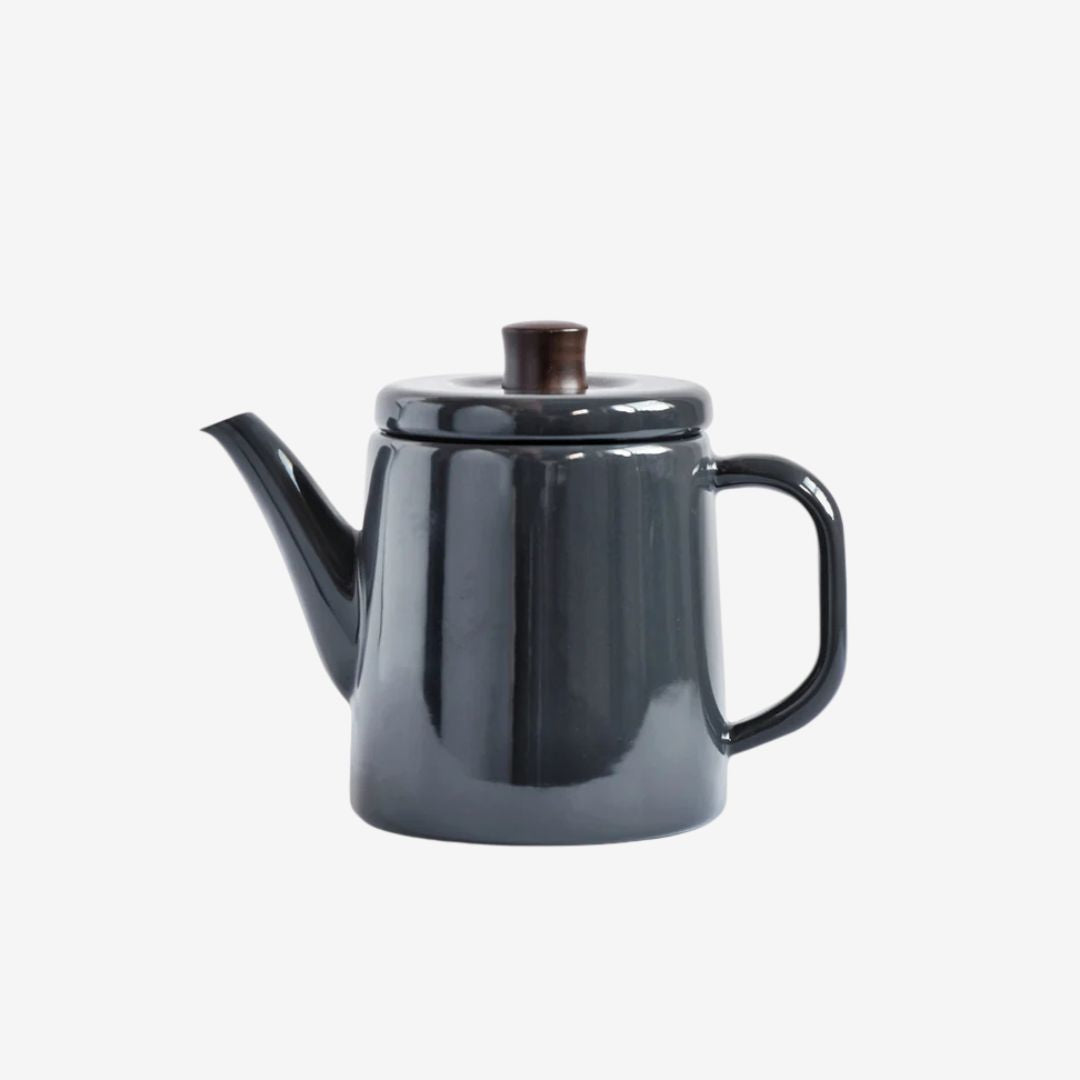 The Amu's smooth enamel surface is bonded to steel, offering excellent heat retention while being resistant to stains and odours. Its thoughtfully designed spout allows for a controlled, graceful pour—ideal for tea rituals, morning coffee, or simply slowing down. The resin handle stays cool to the touch and adds a warm, natural accent to its clean lines.