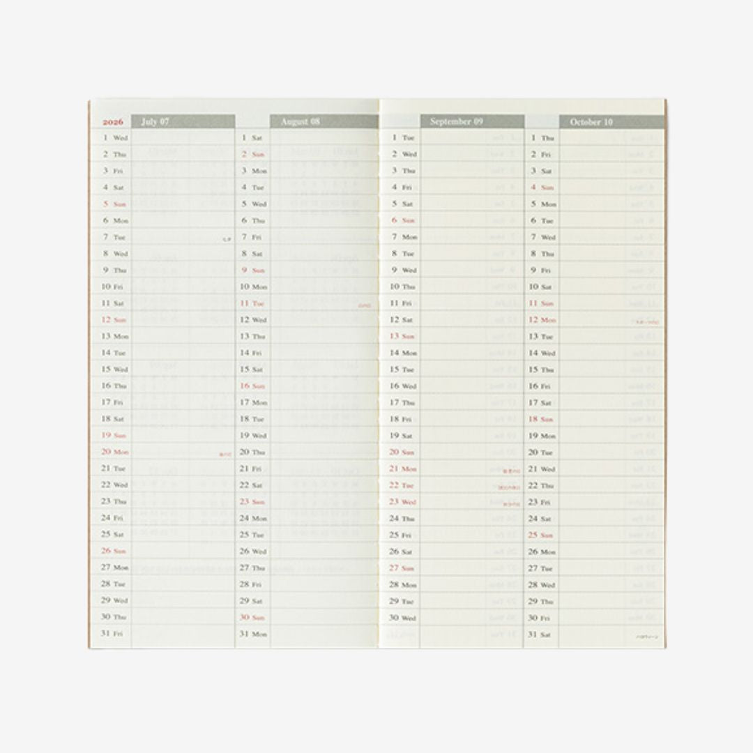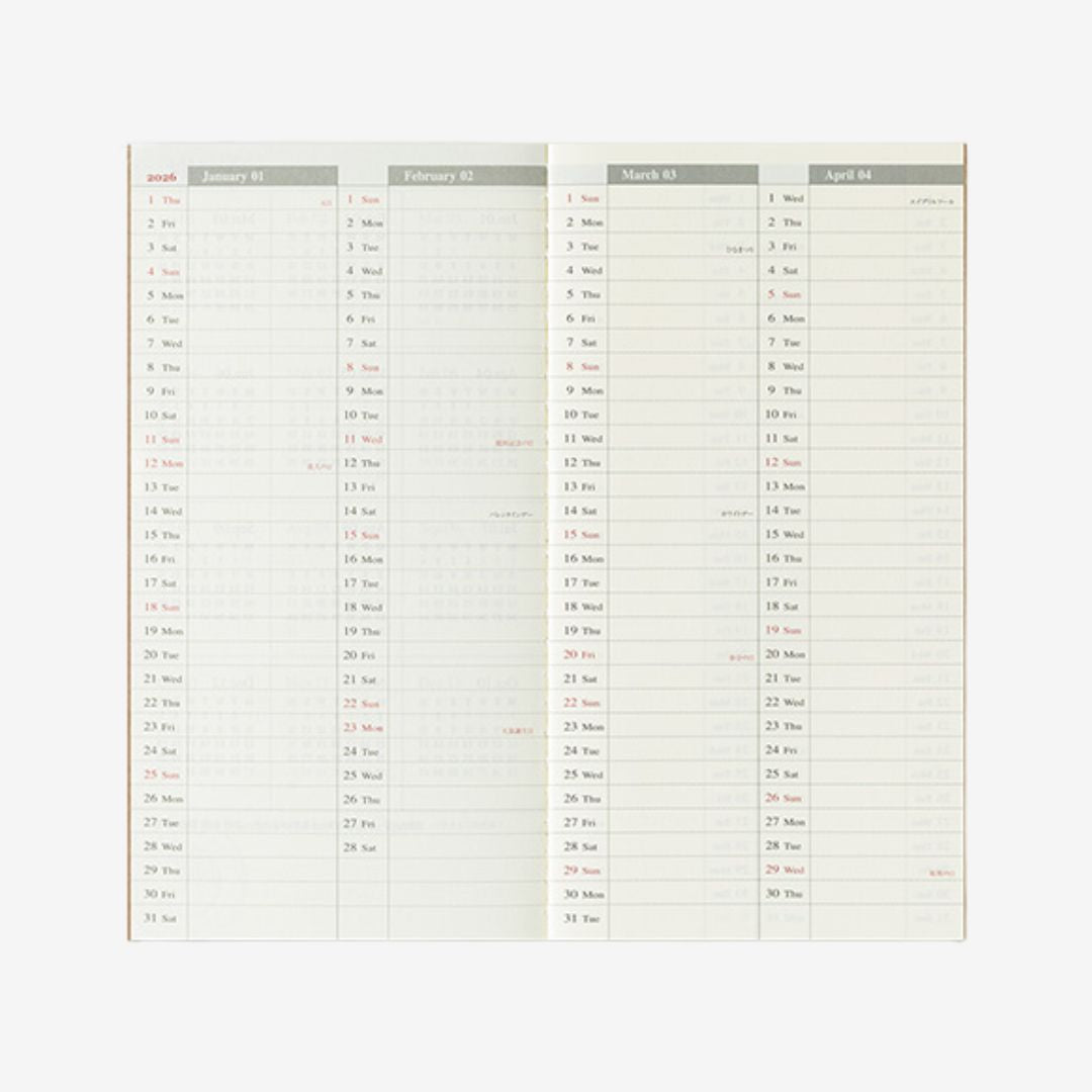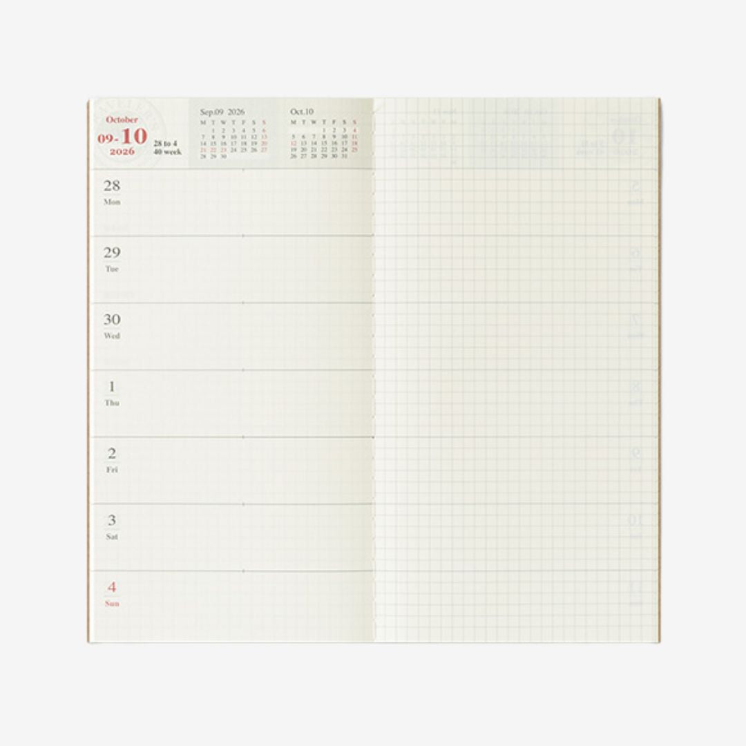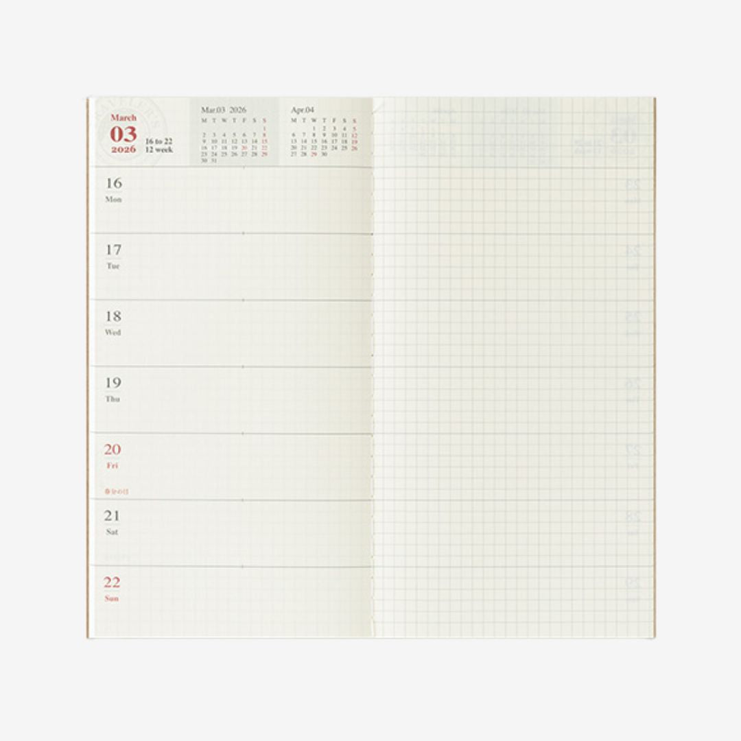 Each spread includes a daily diary and grid memo page. Made with the beautiful MD paper to make writing a pleasure.