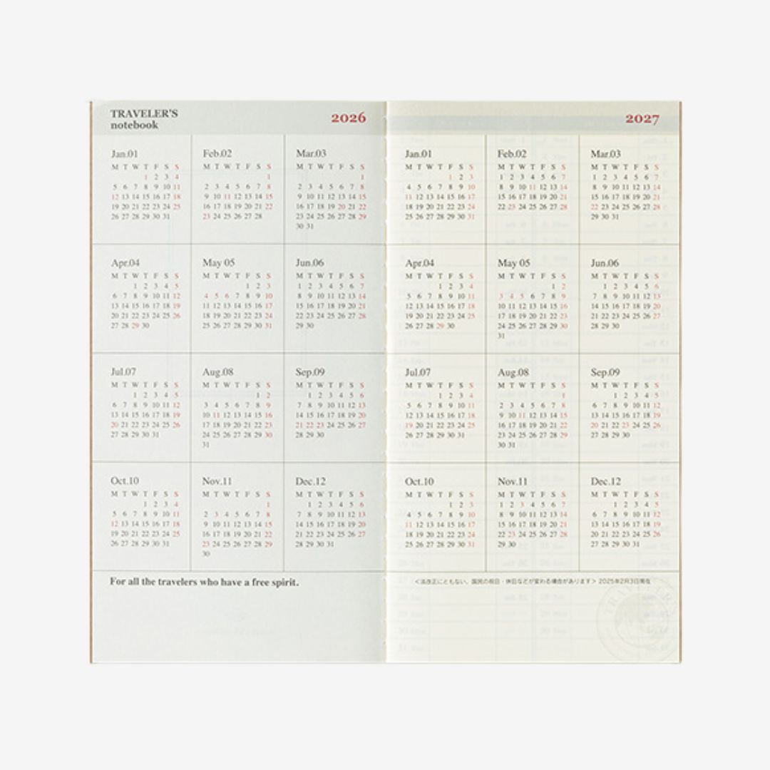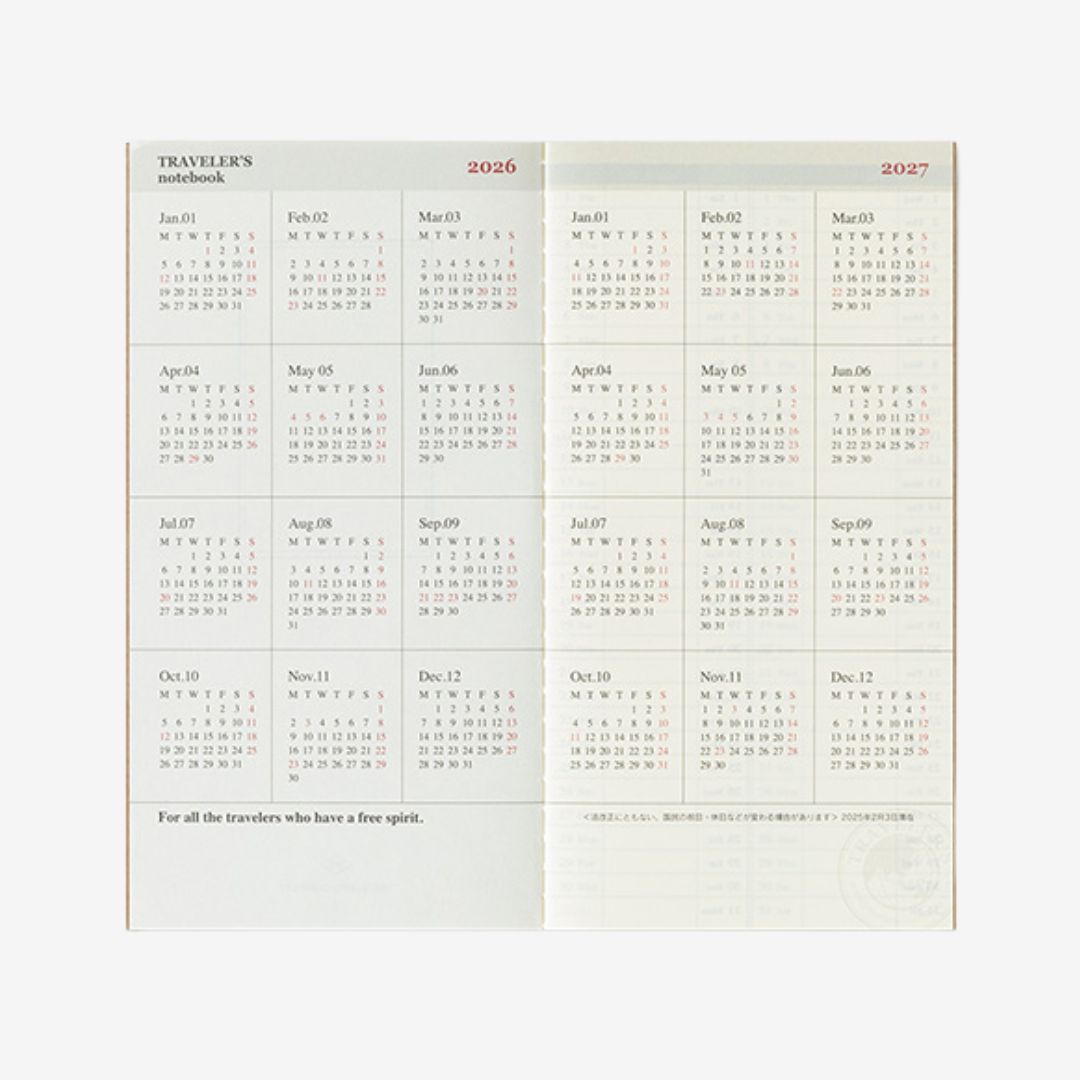 The Traveler's notebook 2026 Week + Memo refill comes with 2 notebooks to prepare you for the year ahead.