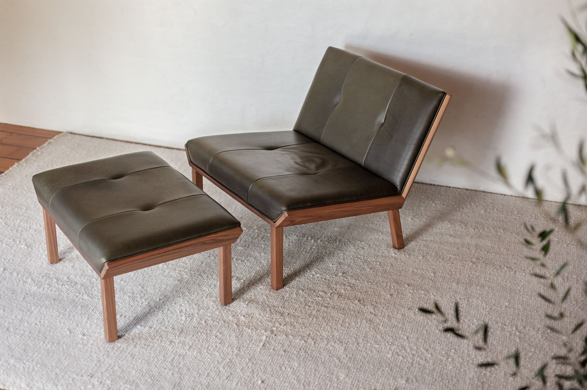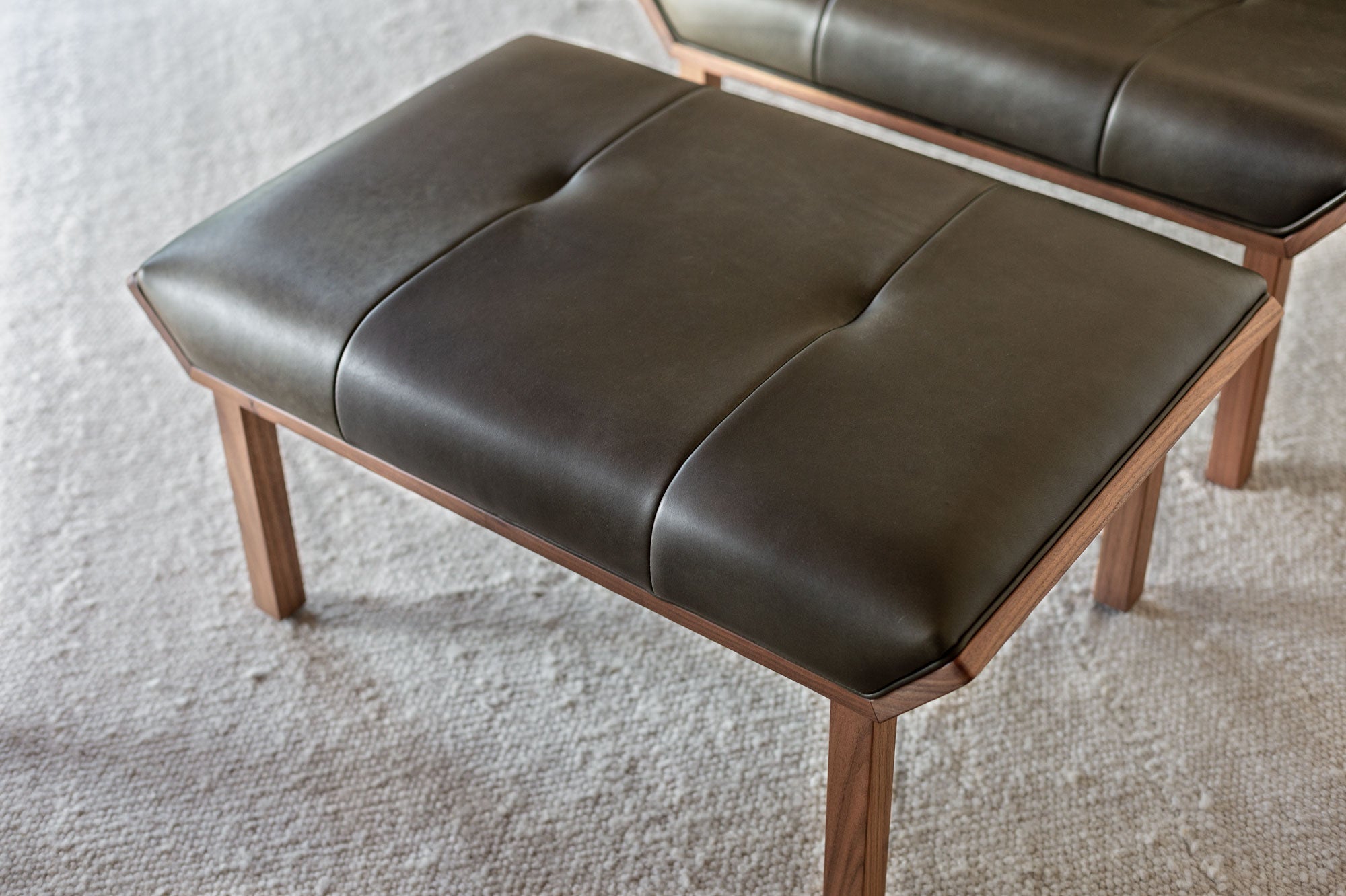 The Um Footstool completes the Um Chair with the same considered design approach. A solid timber frame with angled side details creates visual lightness despite its substantial construction. Subtle piping and modern tufting bring quiet refinement, while quality foam and concealed webbing ensure lasting comfort. Made to order in timber and upholstery combinations that complement your Um Chair perfectly.
