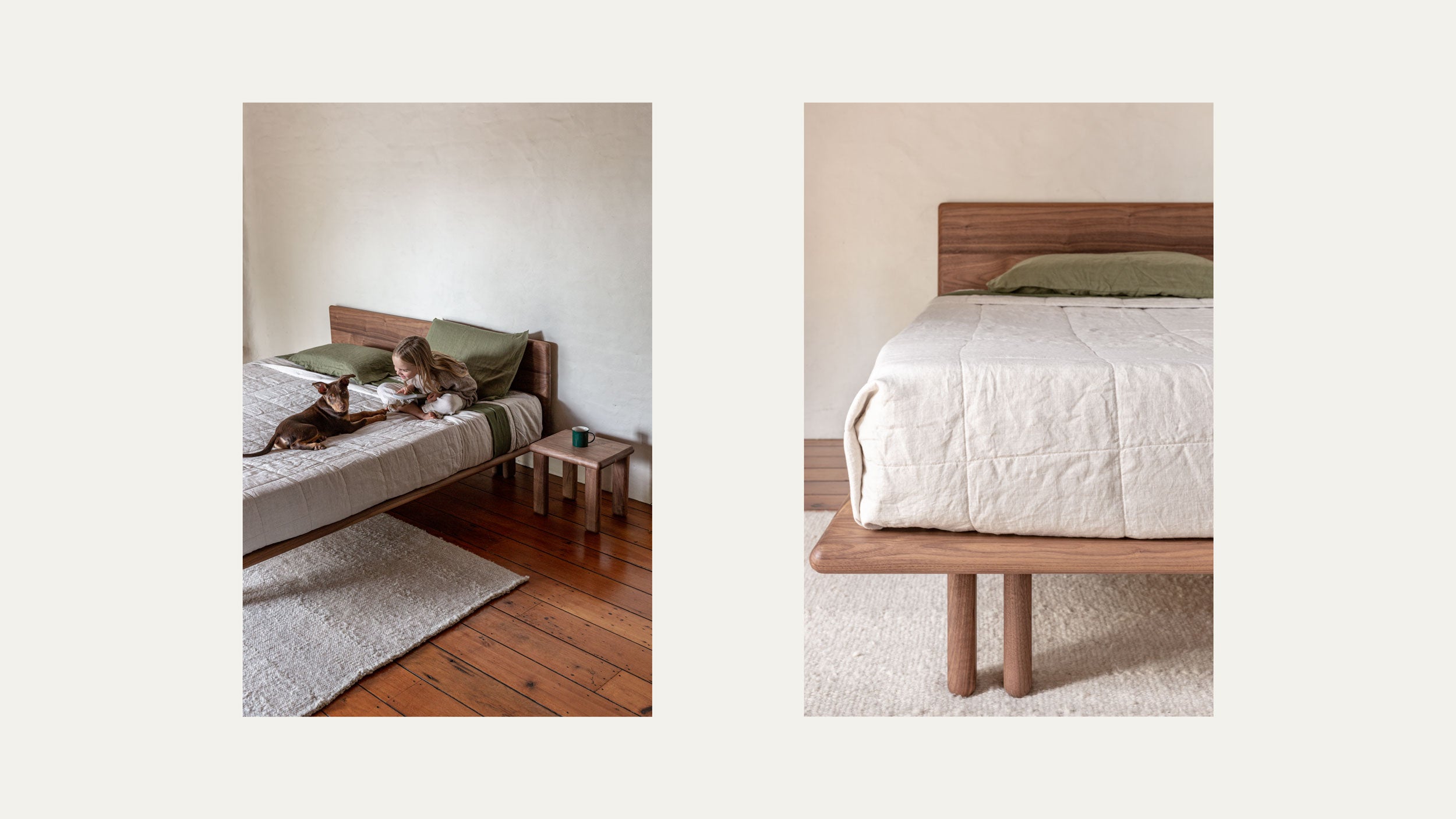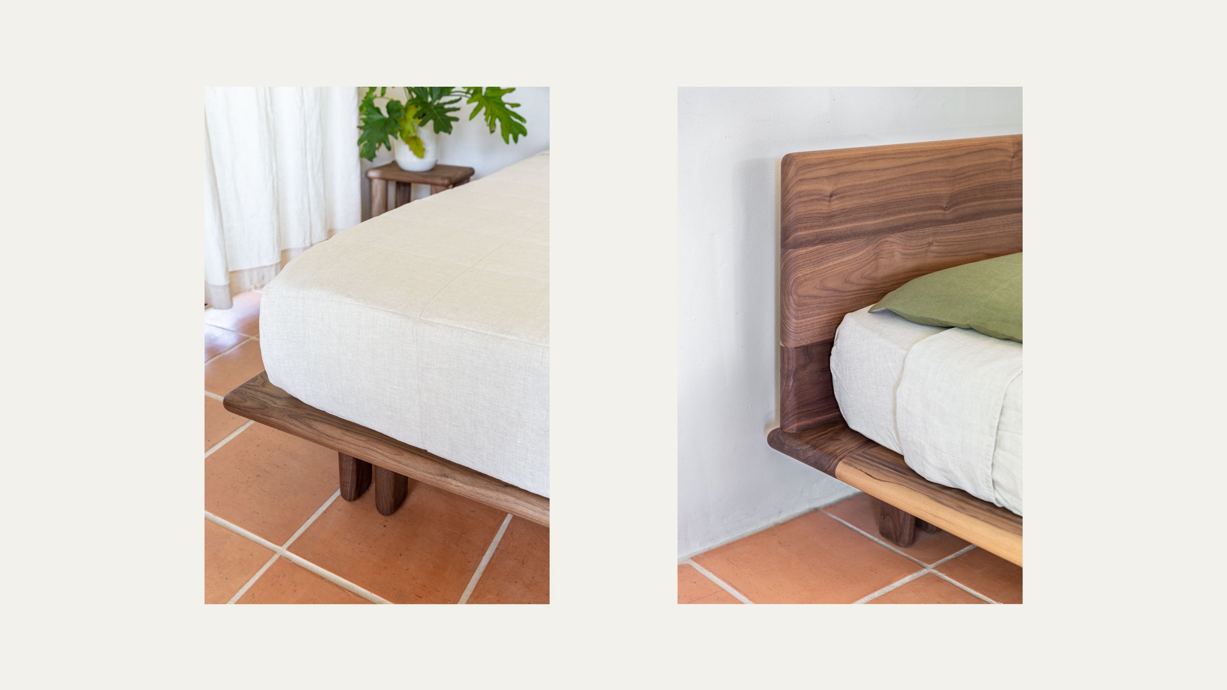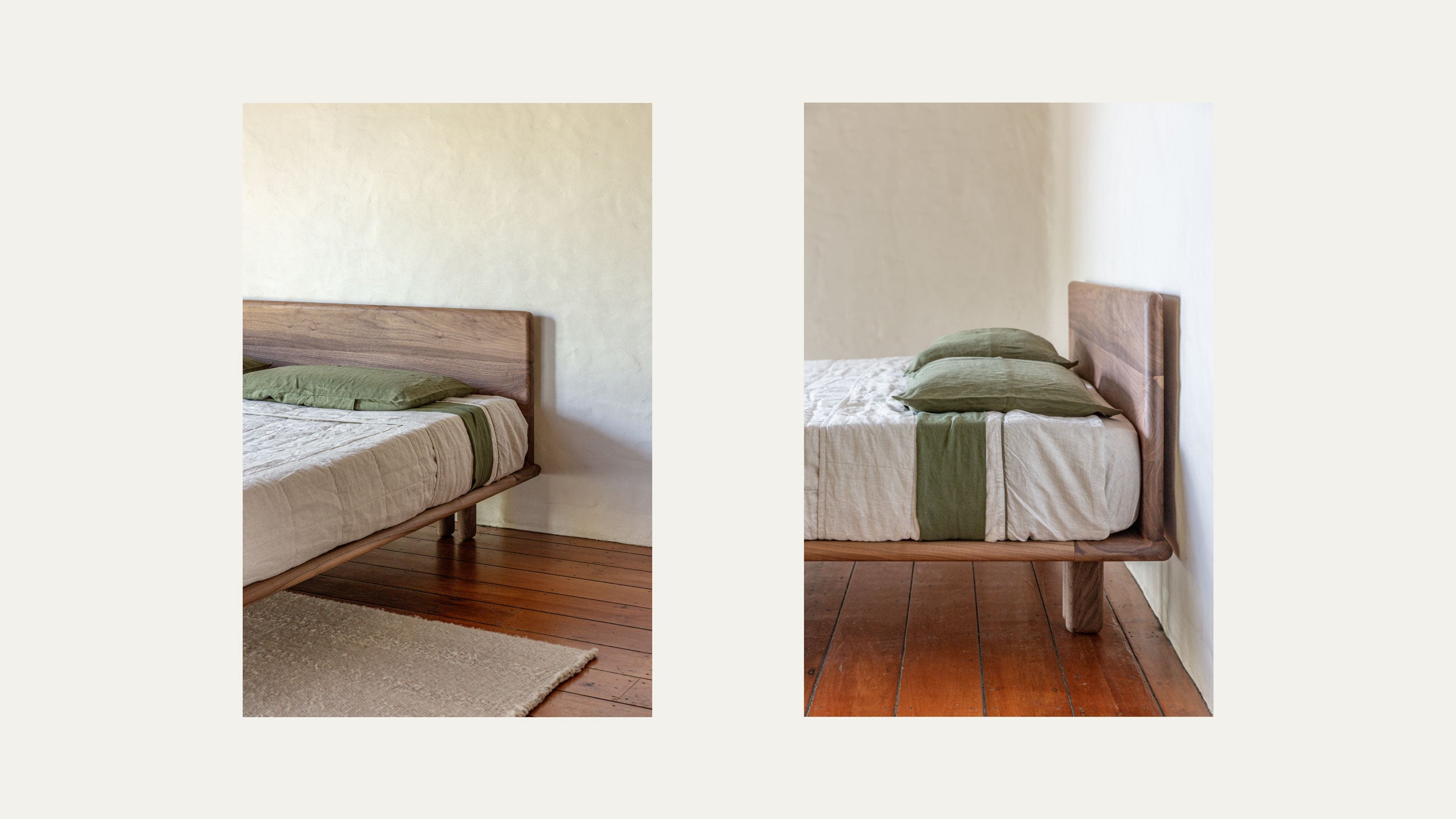 The masterful interplay of vertical and horizontal lines is softened with gentle curves on every contour, drawing the eye to the natural beauty and unique grain of the timber. Each curve and line works in harmony to create a bed that feels both grounded and graceful, transforming the bedroom into a sanctuary of calm.