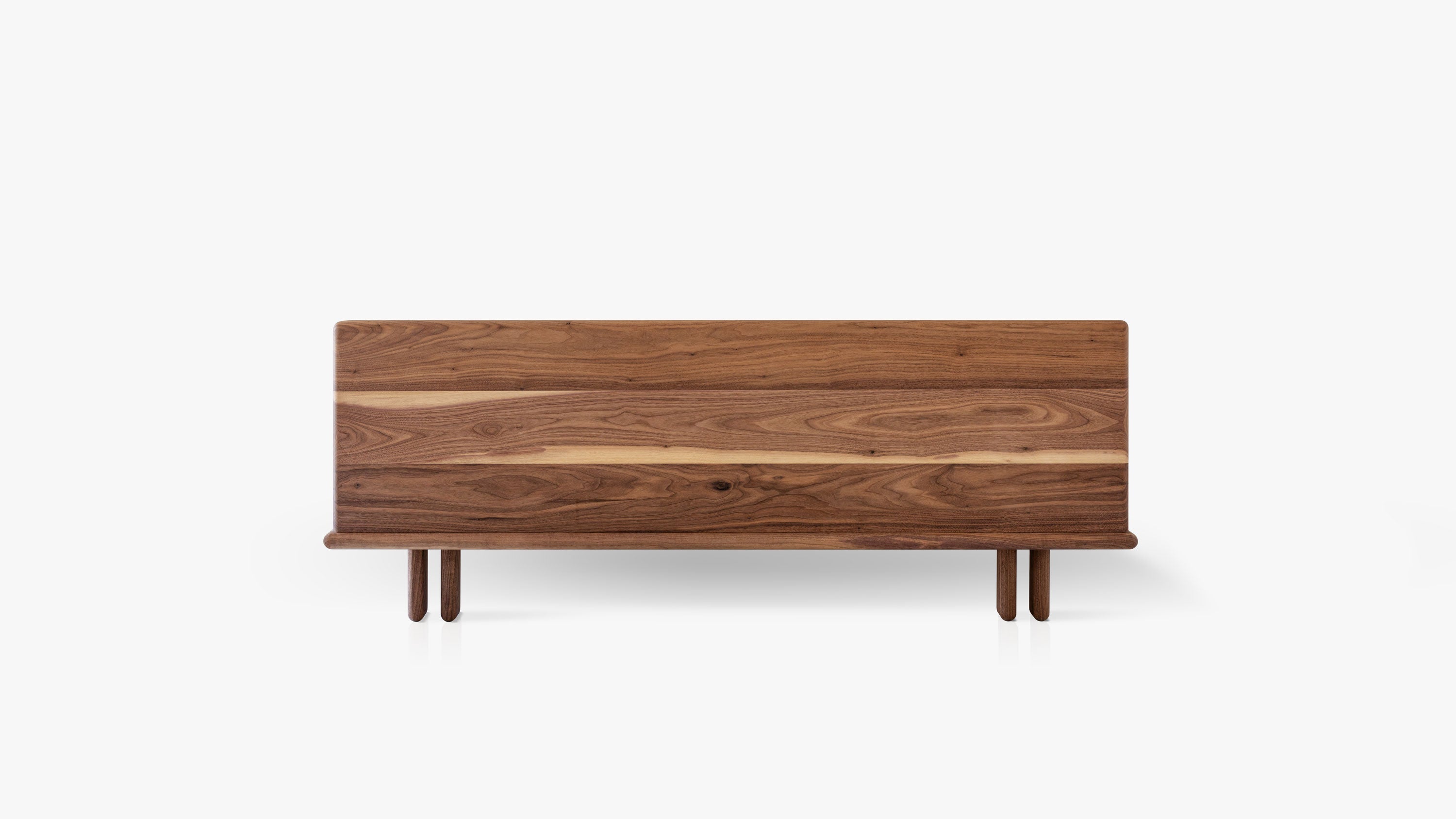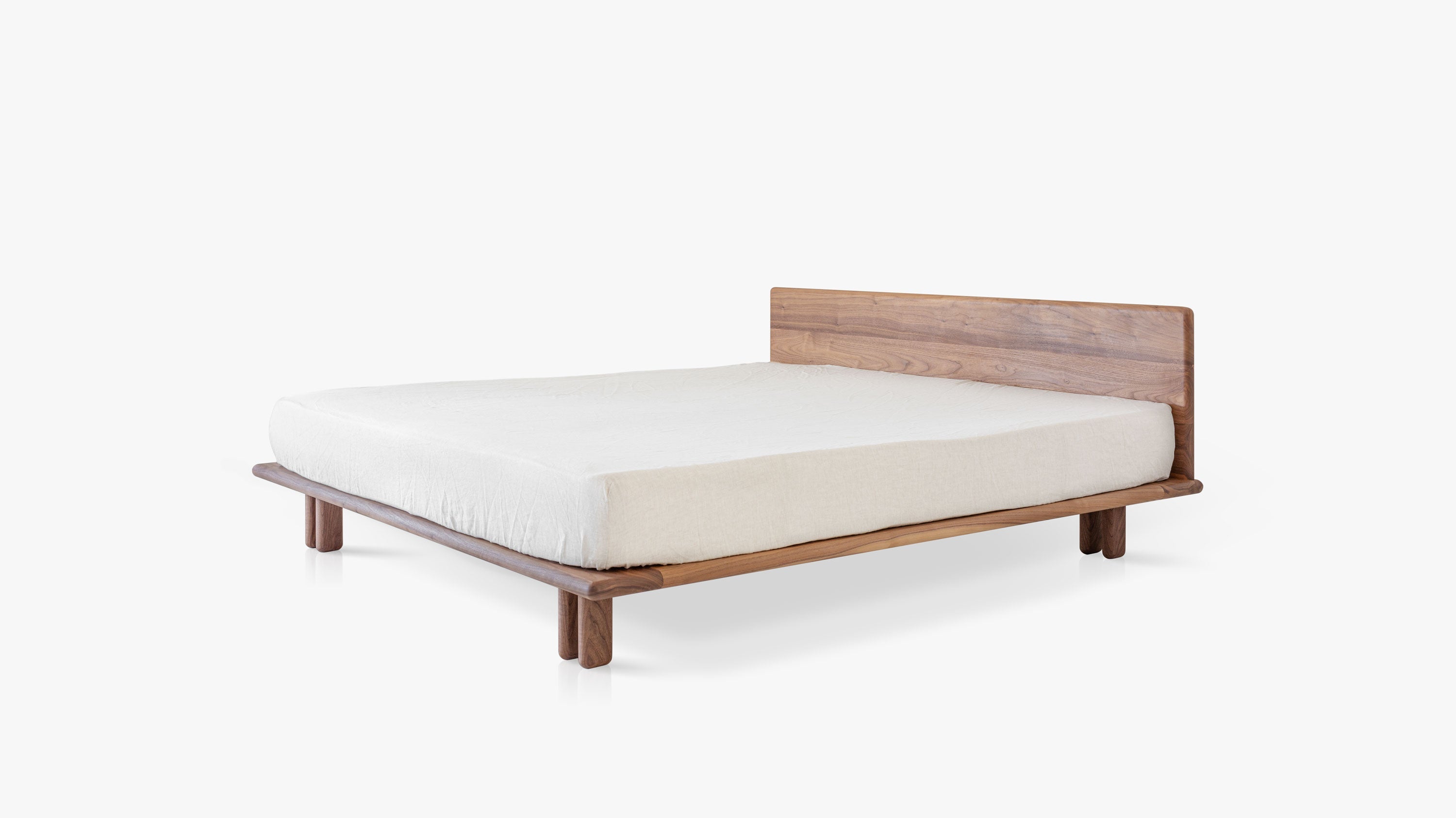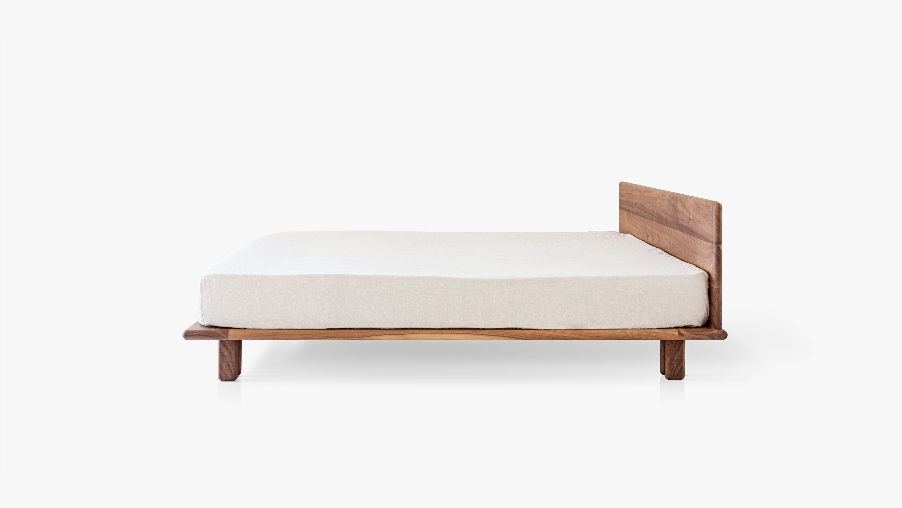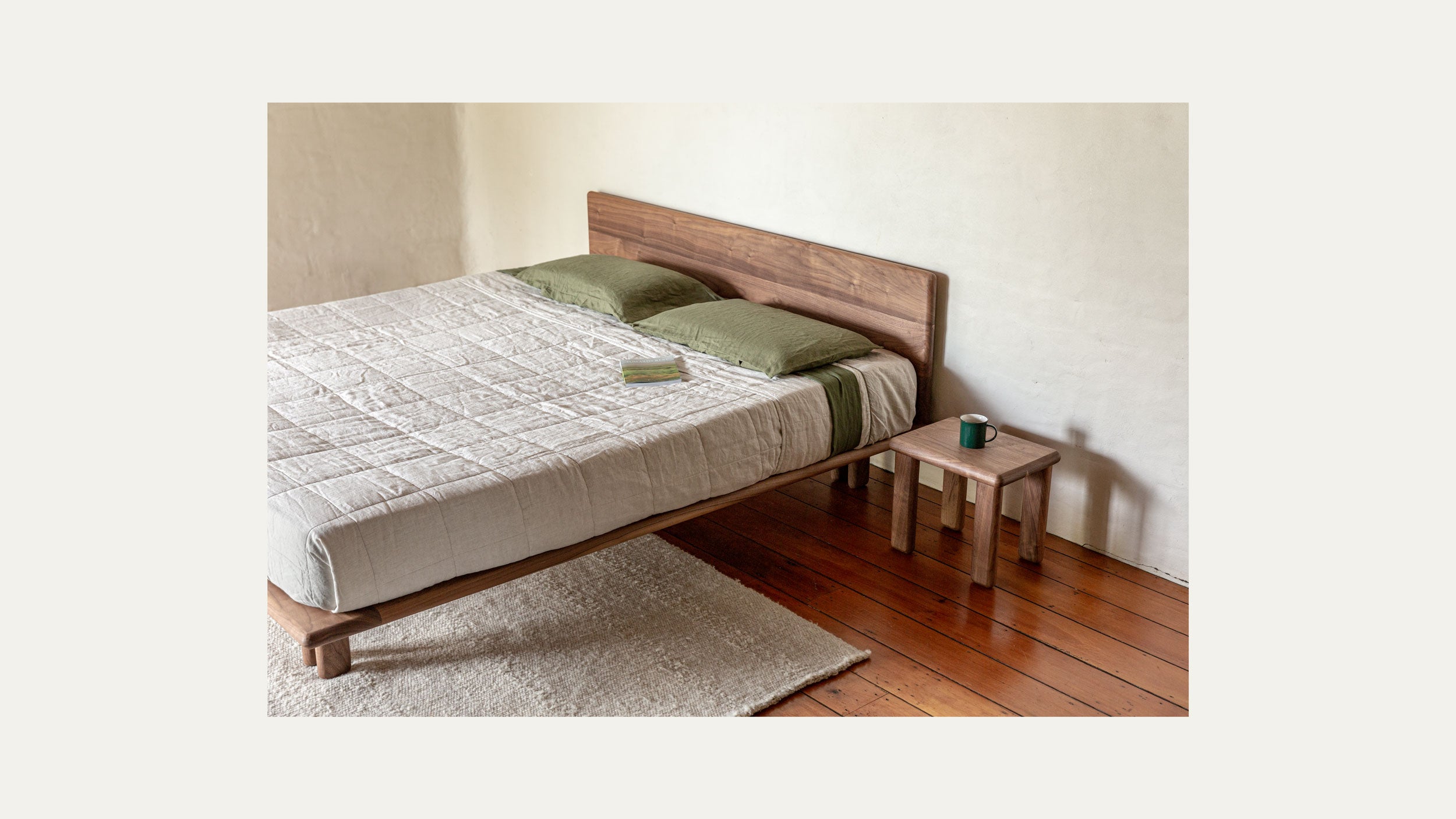The masterful interplay of vertical and horizontal lines is softened with gentle curves on every contour, drawing the eye to the natural beauty and unique grain of the timber. Each curve and line works in harmony to create a bed that feels both grounded and graceful, transforming the bedroom into a sanctuary of calm.
