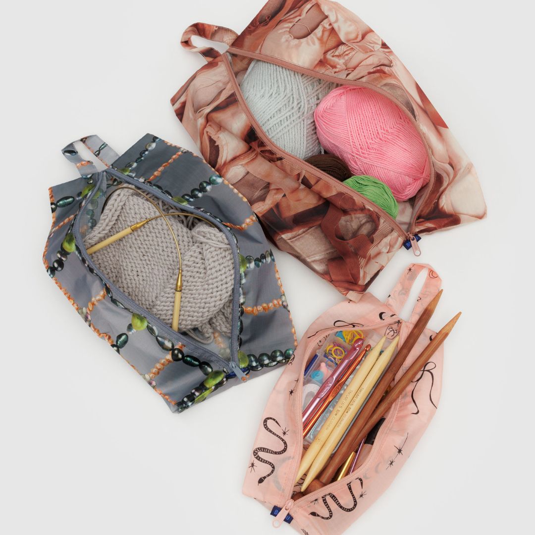 Perfect for packing, organising your bag, or home tidying. This set of three zippered pouches are great for travel and organisation, with loops for carrying and hanging on the go.