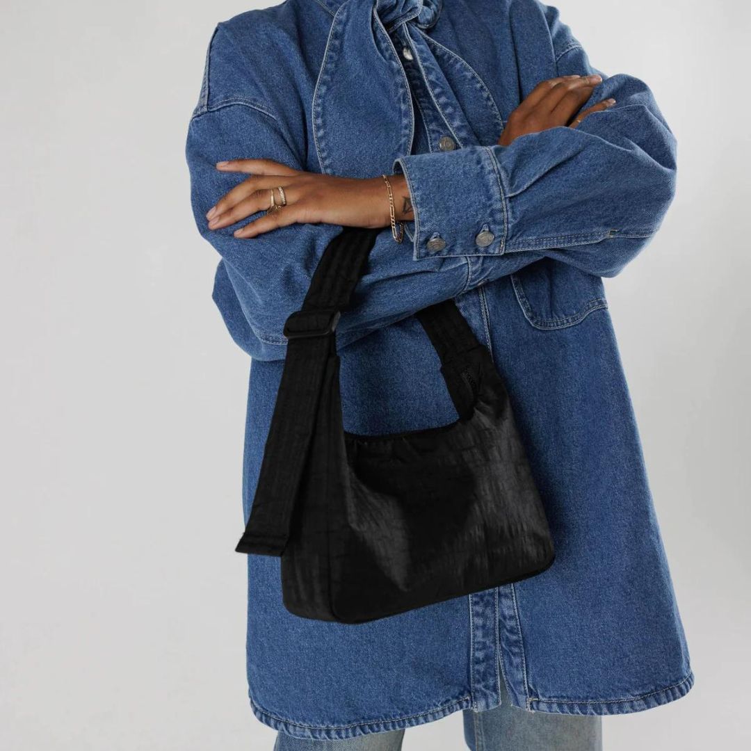A mini version of the new Baggu shoulder bag. Slightly structured, slightly slouchy. Complete with an interior pocket so everything stays in place.