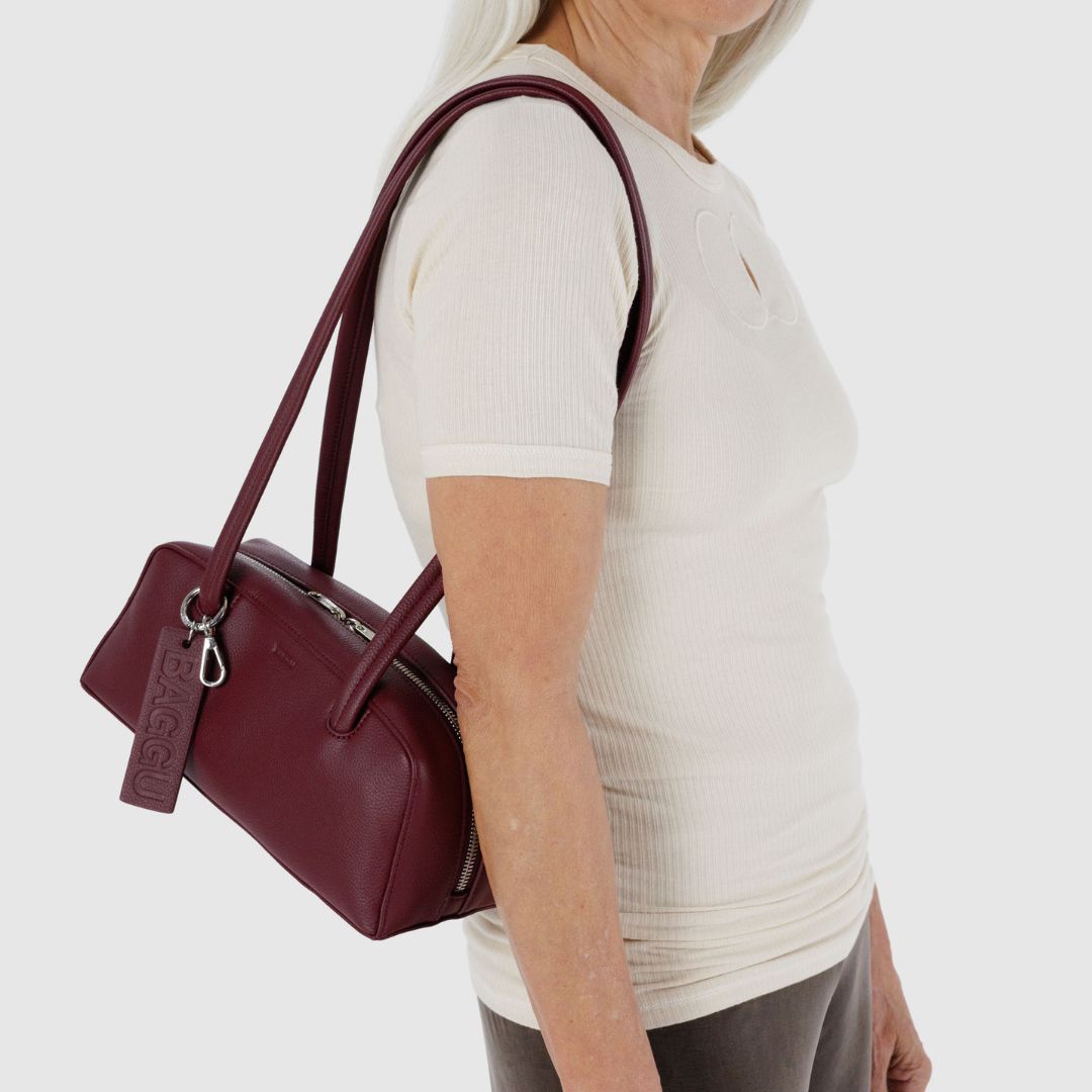 Baggu Recycled Leather Bowler Bag Small - Mahogany