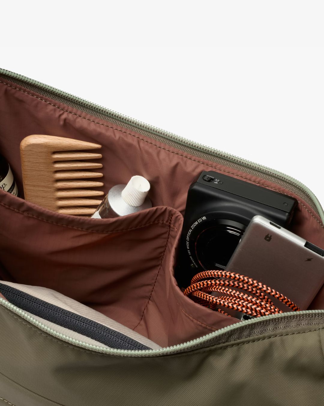- Internal organisation with zip pocket, pop pocket(s), and slip pockets