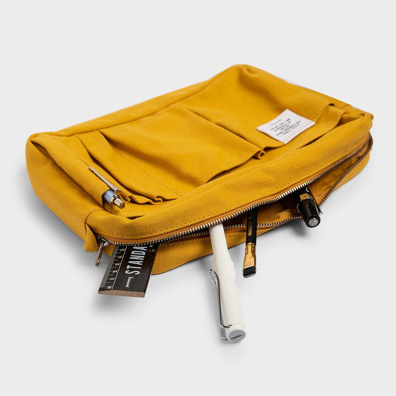 I am constantly surprised about how much this pouch can actually carry. Zipped, my bulky TN fits with the rest of my stored stationery (and that is A LOT) Unzipped, my A5 368 paged Midori fits beautifully without need to remove or swap out any products. The colour is stunning and is proving to be a decor element in my hallway. Would encourage anyone who is creative on the go to purchase this!