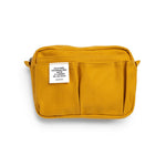 This Mustard Yellow is so bright and uplifting. Made from durable Canvas like cotton fabric. Very well made and designed. Holds a deceptive amount for a Small Pouch.
