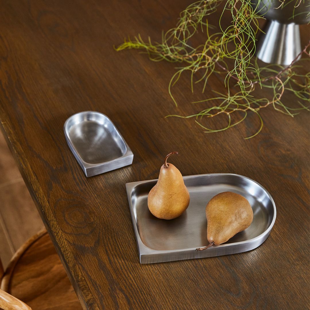 Inspired by the graceful curve of an arch, a form that mirrors life’s natural rhythm and movement. The Arc embodies balance, where strong, defined lines meet gentle curves, bridging structure and spontaneity. In raw, pared-back aluminium, the Arc Tray frames life’s quieter joys—an understated resting place for the objects that matter most. Use it to hold cherished items, or let it become a stage for the small ingredients.