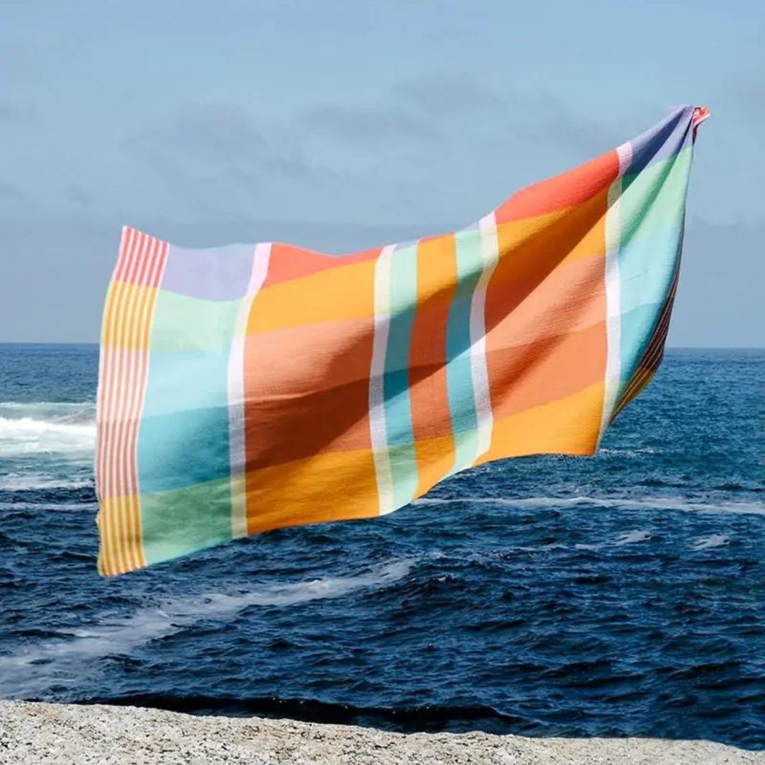 Big, brilliantly bold and 100% cotton the Folly Beach Towel features a playful tapestry of colours reminiscent of sunny days and sticky ice cream fingers at the beach.