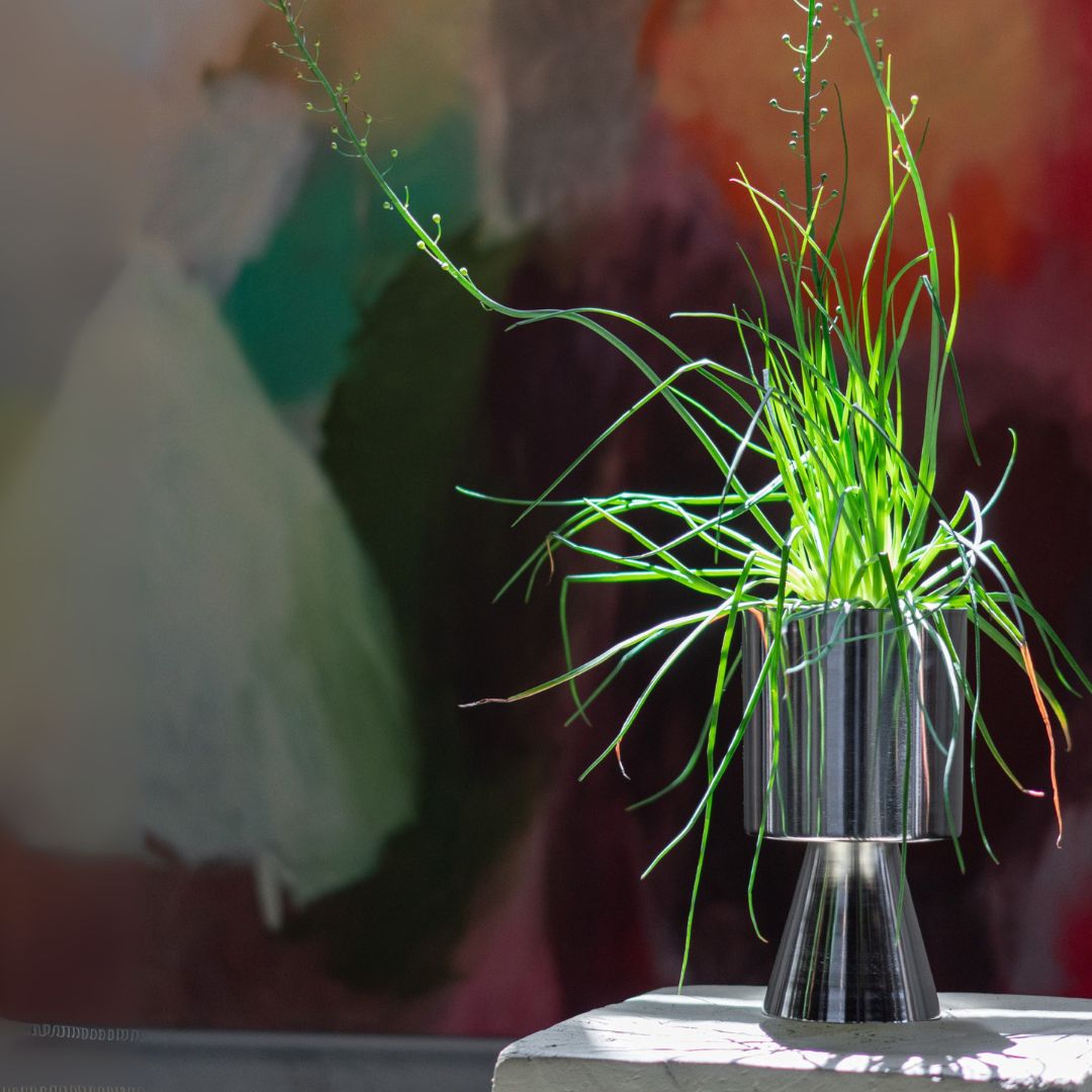 The Lightly Palm Springs Planter in Nickel is a modern metal planter designed for indoor and outdoor styling. Hand-crafted from lightweight spun metal, it features a contemporary cylindrical silhouette with a soft brushed nickel finish that suits a variety of interiors. Perfect for displaying statement plants, succulents, or trailing greenery, this nickel planter adds a refined, sculptural touch to living rooms, entryways, balconies, and patios.