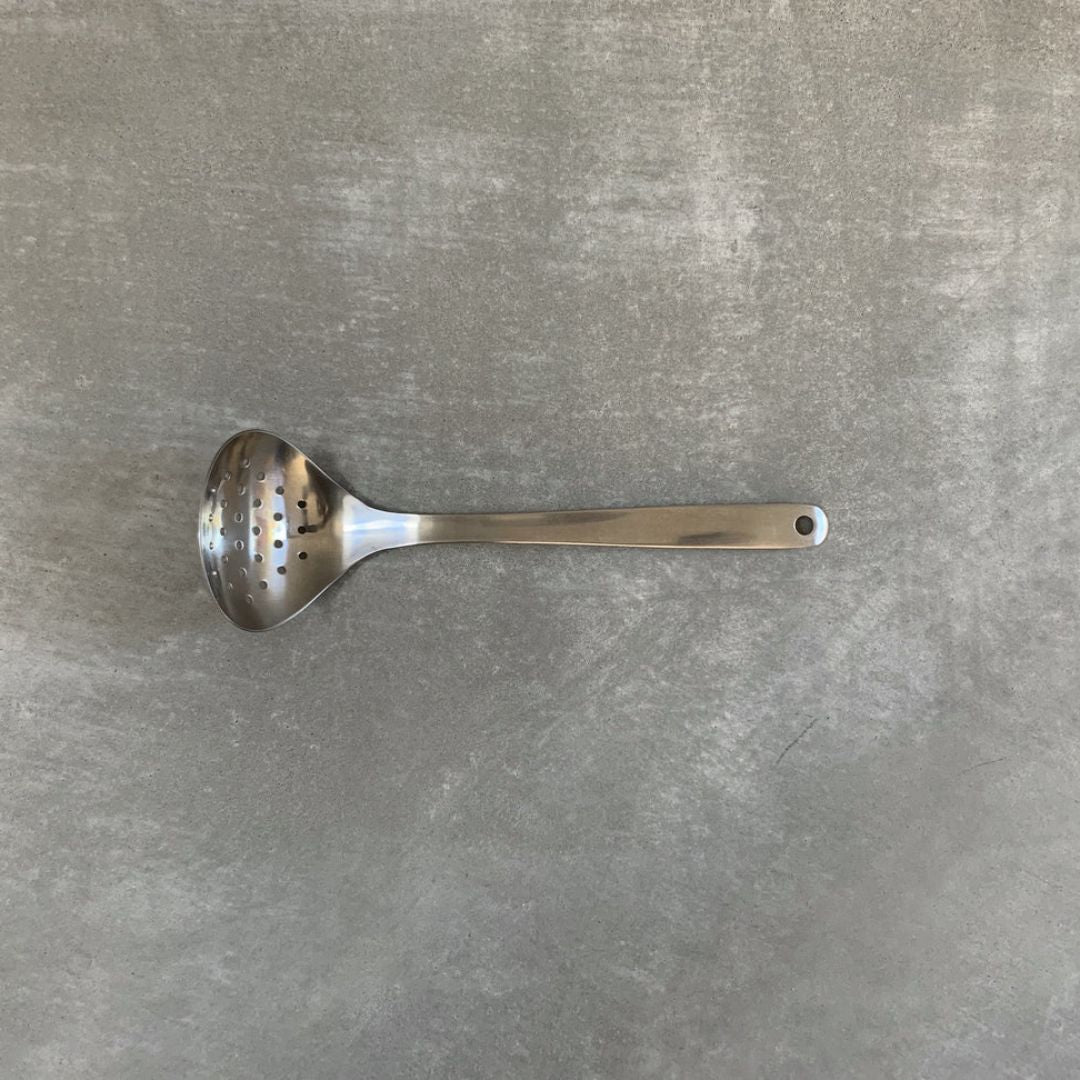 The Sori Yanagi Stainless Steel Skimmer is celebrated for its exceptional craftsmanship and thoughtful design. Constructed from durable 18-8 stainless steel, it features a finely perforated bowl for lifting and draining foods, skimming stocks, or retrieving delicate dumplings with ease. Its refined proportions strike a balance between lightness and sturdiness, while the ergonomically curved handle ensures comfort and precise control. An essential addition to a well-considered kitchen toolkit.