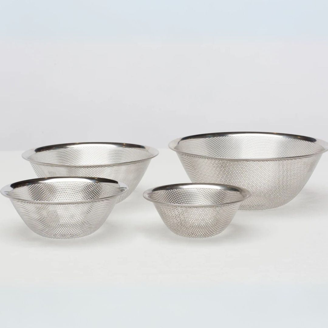 The Sori Yanagi Stainless Steel Strainer combines simplicity, precision, and utility, making it An essential addition to a well-considered kitchen toolkit.. Crafted from premium 18-8 stainless steel, it is durable, lightweight, and perfect for tasks like rinsing, straining, and draining. Its wide rim and stable base ensure ease of use and stability. Available in various sizes. Pair with matching stainless steel bowls