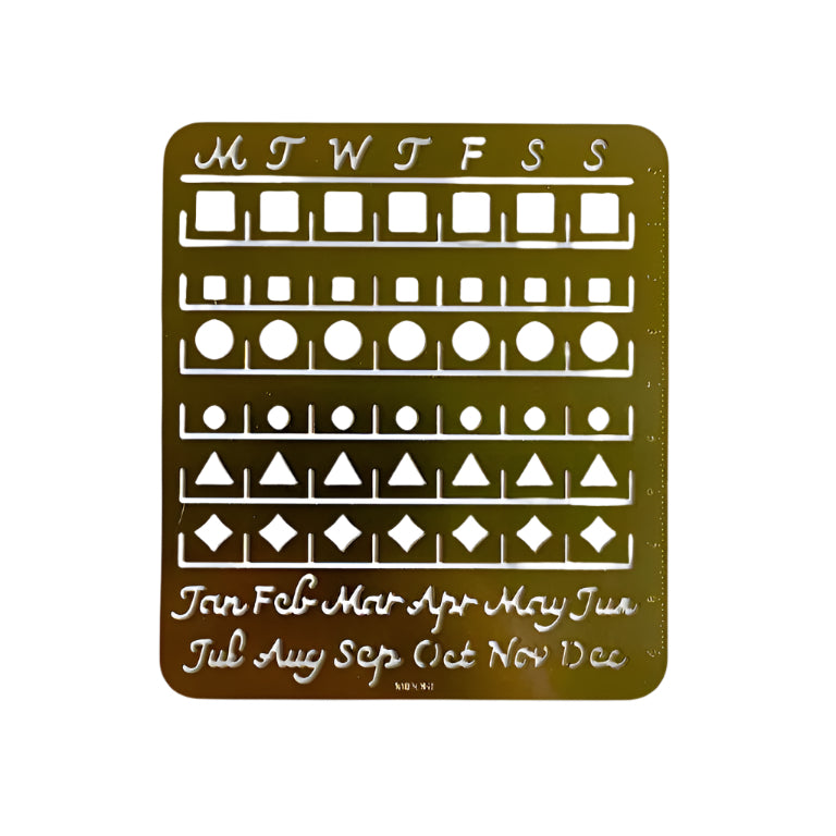 The Midori Brass Calendar Template - is designed for creating beautifully organised monthly calendars in your notebook or planner. Crafted from 0.3mm thick brass, it offers precision and elegance while remaining slim enough to slip neatly into your planner. Its non-slip backing ensures stability while drawing, while thoughtfully included shapes make it easy to track habits, manage to-do lists, and customize your schedule.