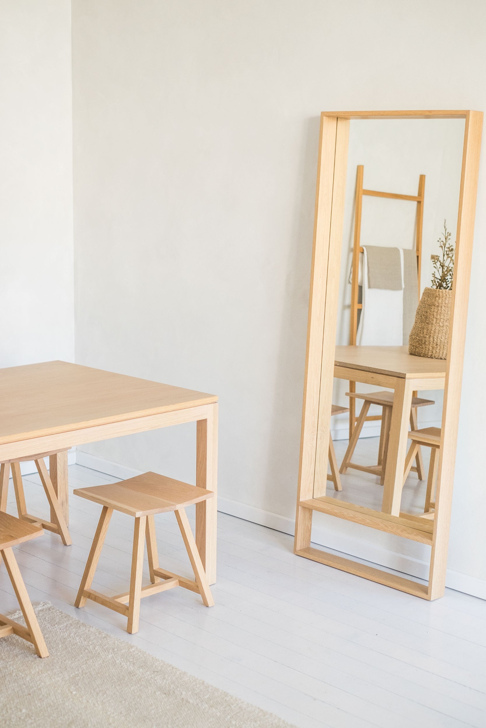 The Lapse Mirror is a unique piece that combines clean lines with subtle detailing. Its box-style timber frame features a recessed mirror and a distinctive negative space detail at the base, creating a sense of depth and interest. Designed to be either leaned against the wall or hung, this mirror offers flexibility in placement. Available in a variety of solid timbers and finishes, the Lapse Mirror is a statement piece that brings both functionality and artistry to your space.