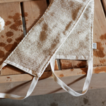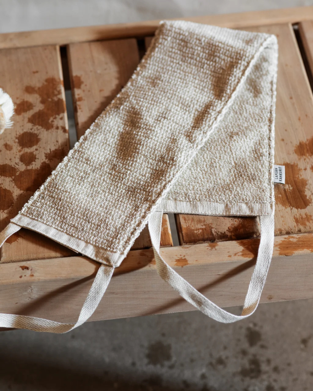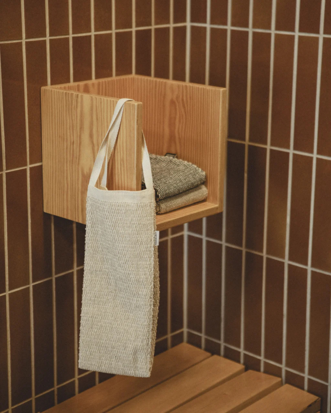 The Meri Wash Mitten is crafted from 70% linen, 30% cotton in a terry weave. The natural texture provides gentle exfoliation and develops a more absorbent character with each wash as the fibres gradually soften. Durable construction for daily use.
