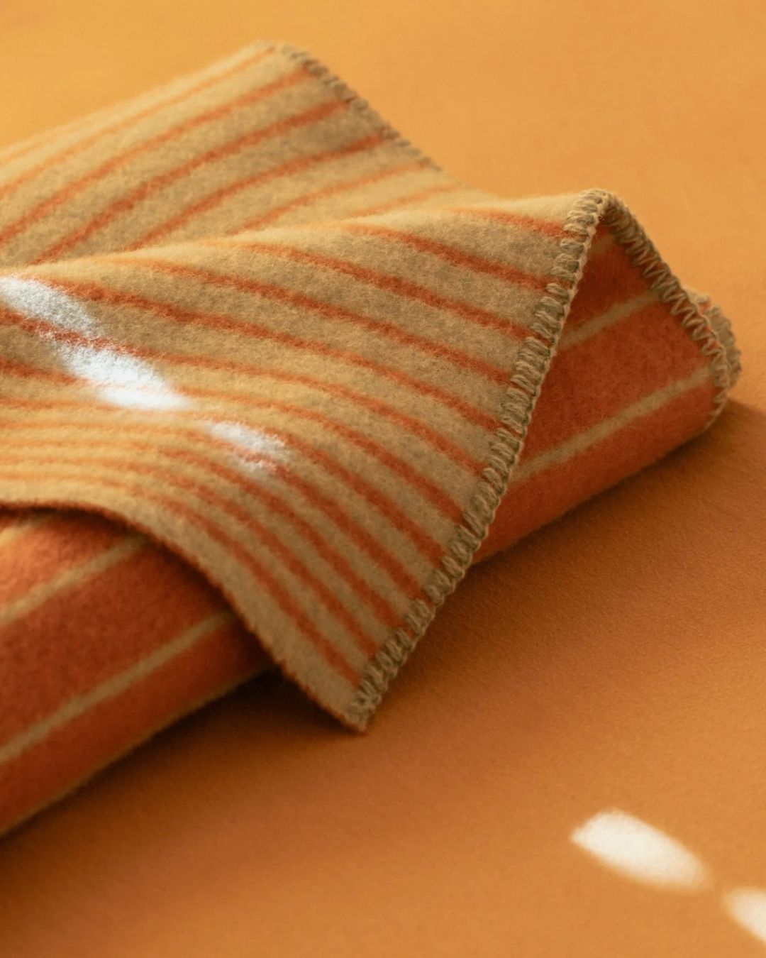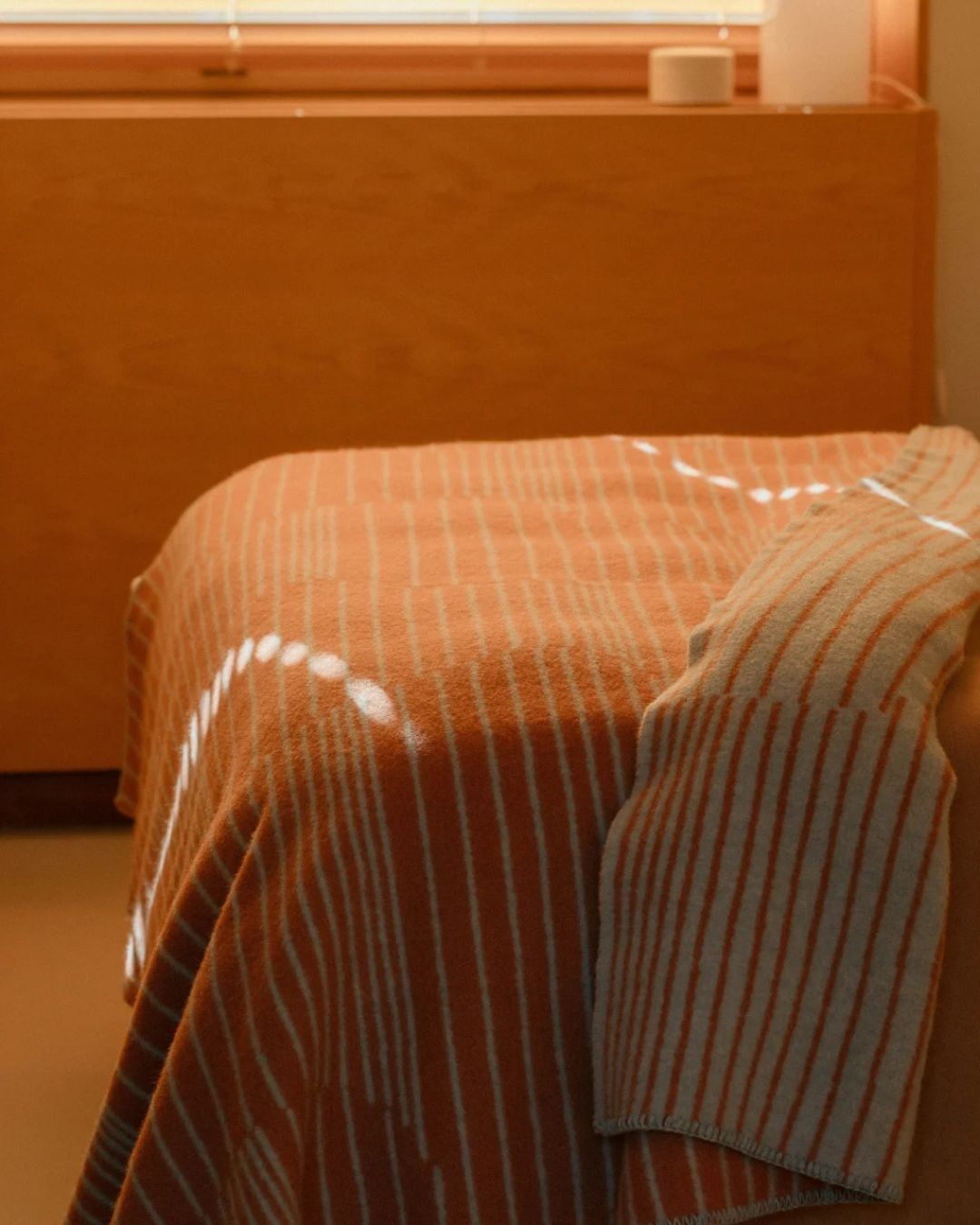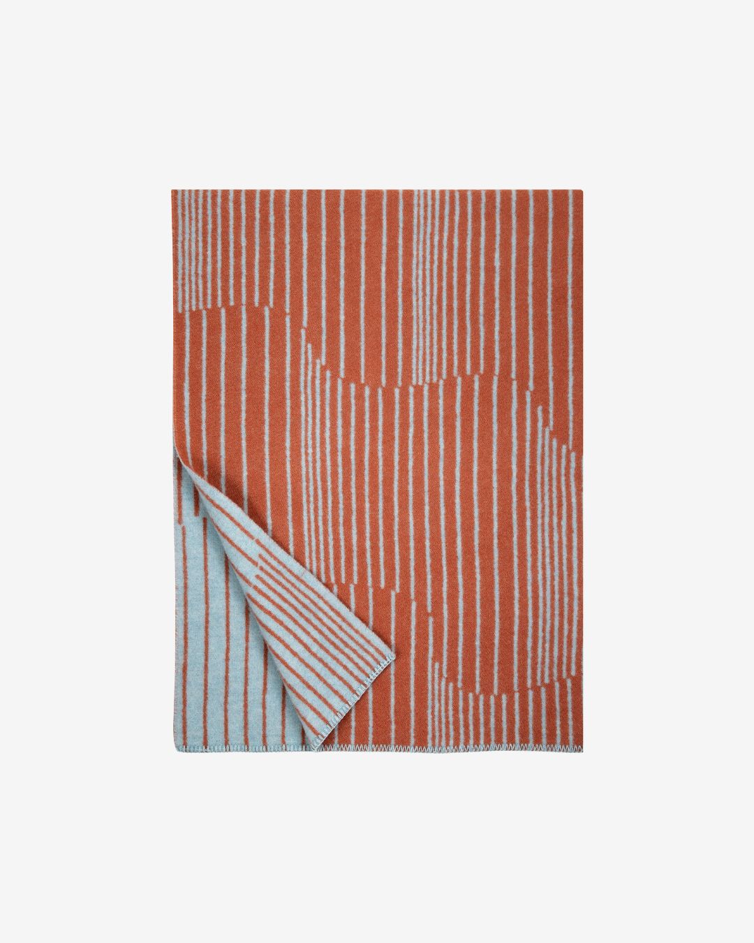 The Aurora Wool Throw is woven in Lapua, Finland from 100% wool, including locally sourced Finnsheep wool. Designed by Akira Minagawa, the pattern features layered lines that create subtle depth and visual texture. Soft, warm, and gently draped, it works for sofas, beds, or layering across furniture.
