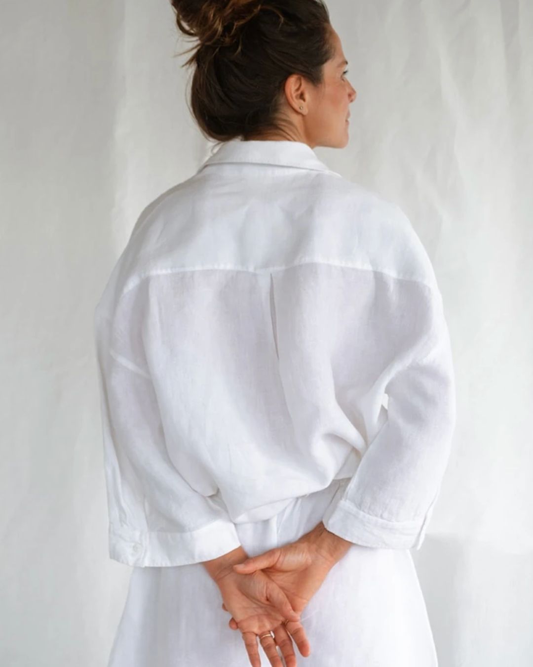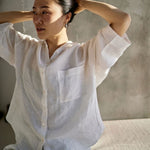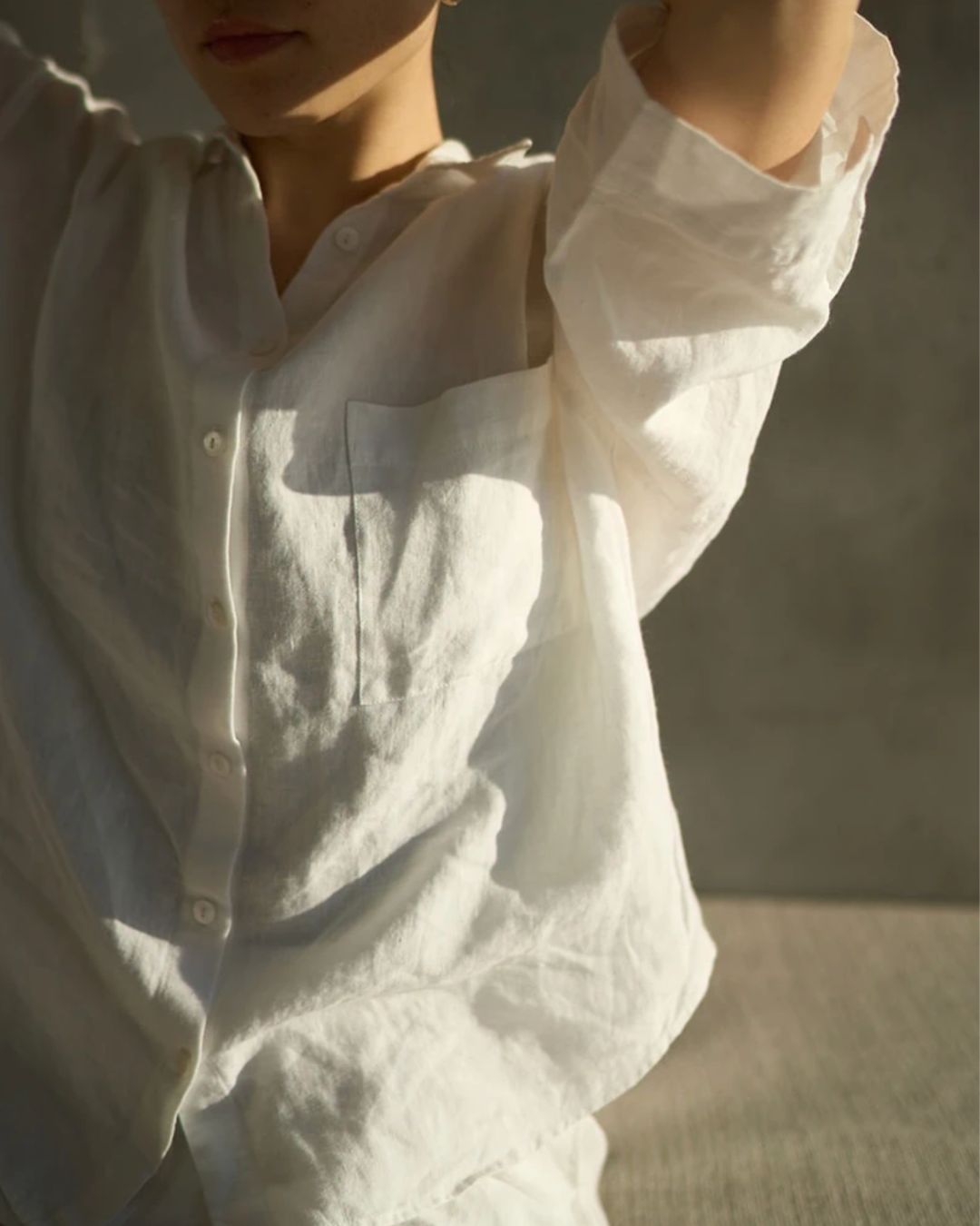 Soft, roomy linen shirt that feels as good as they look—crafted for comfortable sleep or relaxed weekend lounging. Woven from 100% linen grown in Europe's Flanders region, where the mild climate produces exceptional flax, then spun by Italian master craftspeople in Bergamo and woven into fabric at Mungo's mill in Plettenberg Bay, South Africa. The natural fabric breathes beautifully and softens with each wash. Matching short available.