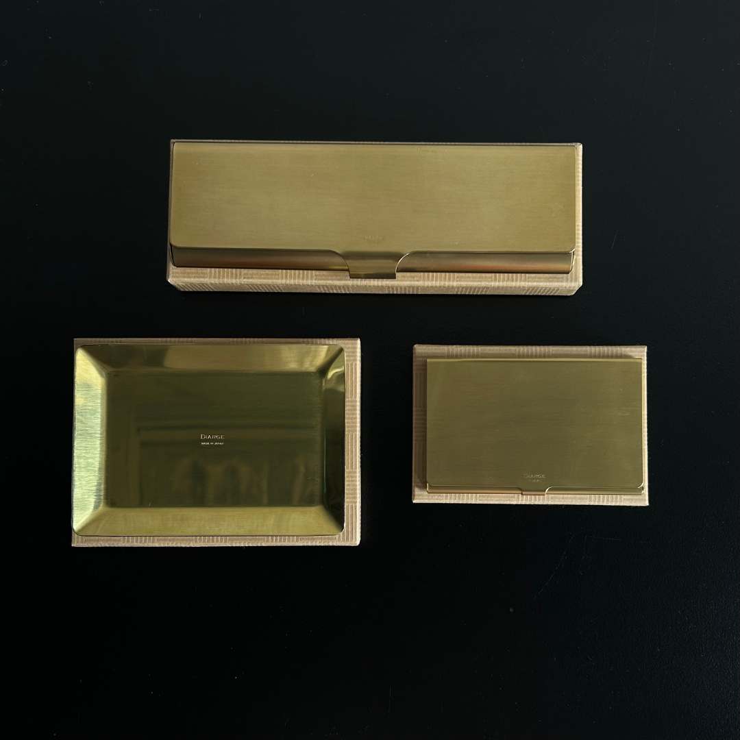 Simplicity and sophistication. Crafted in Japan, this solid brass tray showcases clean lines and a warm golden hue that will develop a distinctive patina over time, adding character and depth to its timeless design.