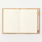 A soft protective jacket for your Midori MD notebook. Made from a single piece of vegetable-tanned goat leather that will develop a unique patina as time goes by changing from a soft light beige to deep amber. The cover has not been dyed or coloured to keep the natural colour and texture of the leather as it ages.