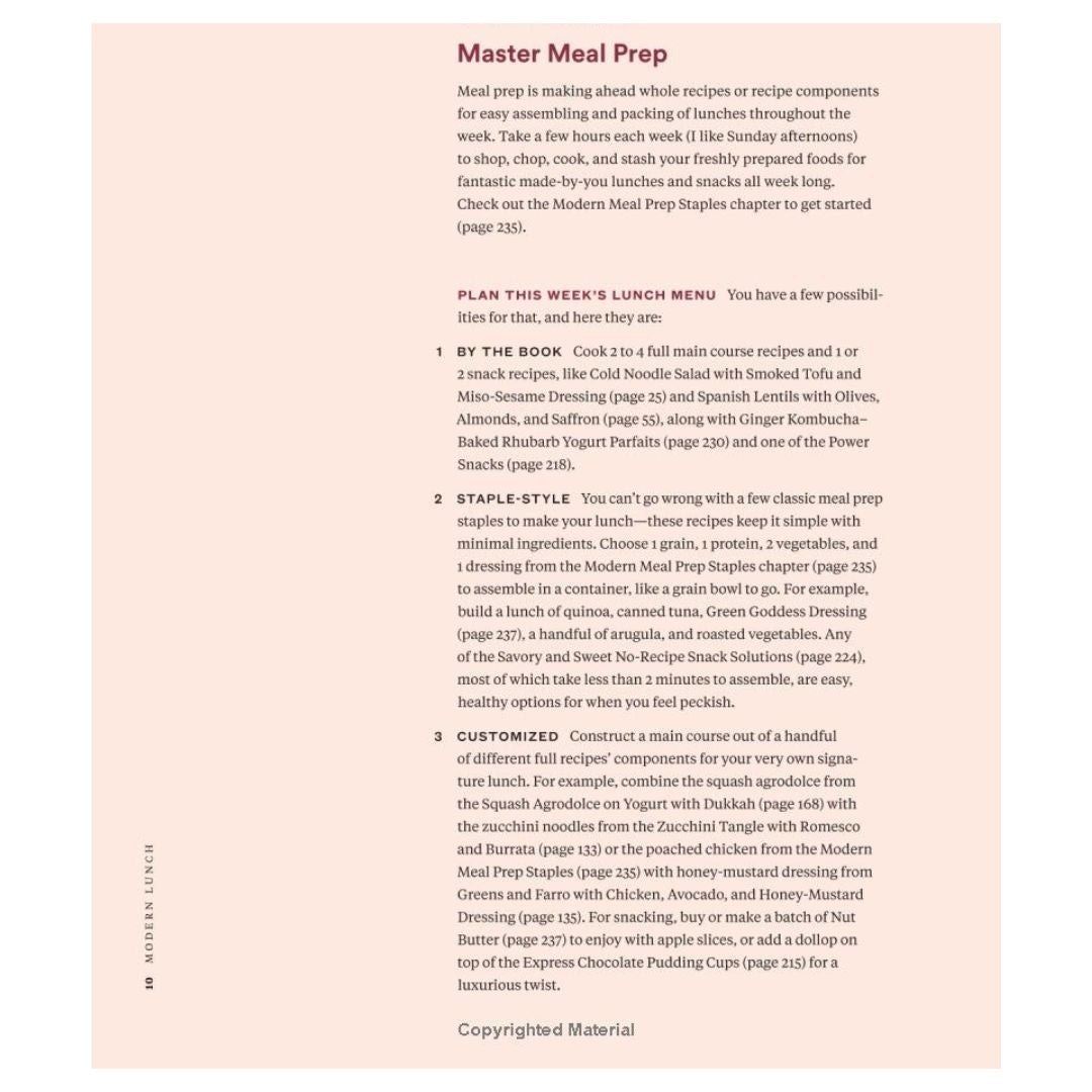 Modern Lunch is here to save you with its array of meals in jars, soups and stews, Contemporary lunch boxes and lunch for home and hearing on weekends. Recipes such as Tomato Sourdough Soup with Cacio e Pepe Socca Triangles or Walnut-Crusted Avocado, Feta, and Eggs with Pesto Rice will make you actually look forward to lunchtime! And if you're wanting something more substantial there's also Greek Chopped Salad with Crispy Peppercorn Salmon or a take on a classic ploughman’s lunch that incorporates other delicious flavours.