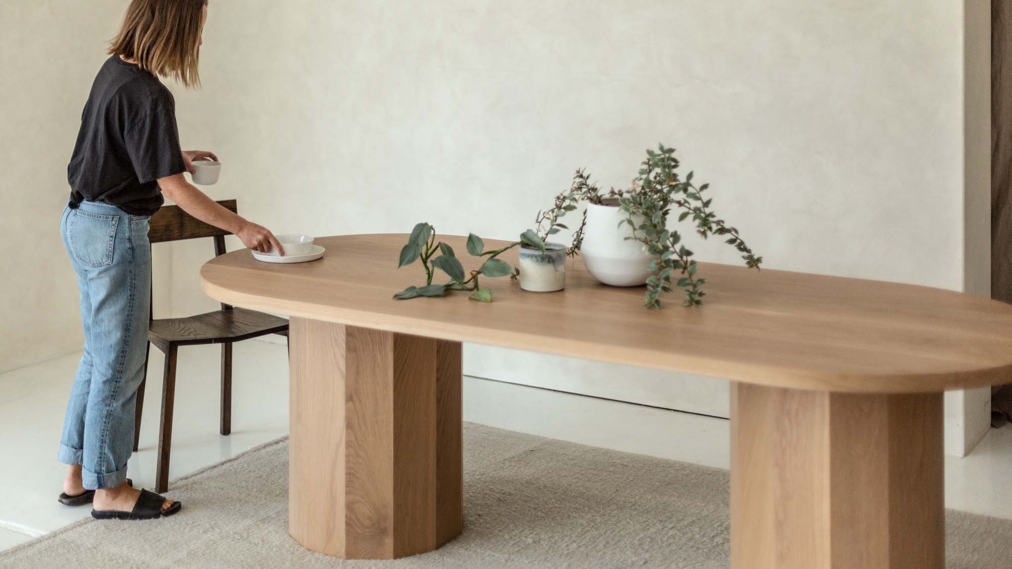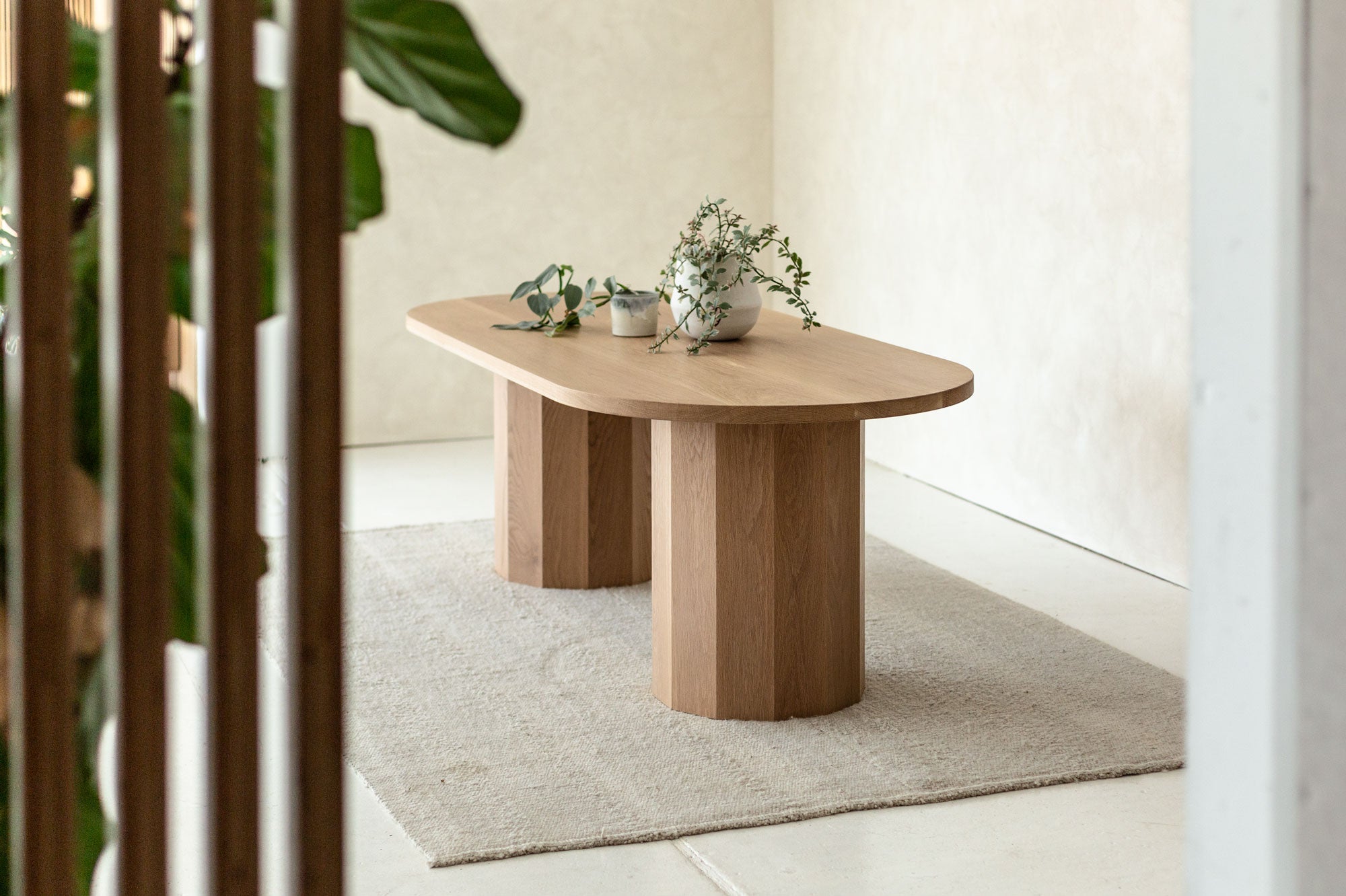 The Double Barrel Table is a bold yet refined centerpiece from the Barrel Collection, designed to make a statement in your dining or living space. Crafted from solid timber, it features two precisely joined, flat-panelled, hollow cylindrical bases supporting a 40mm thick capsule-shaped top. The collection brings a timeless yet contemporary aesthetic.